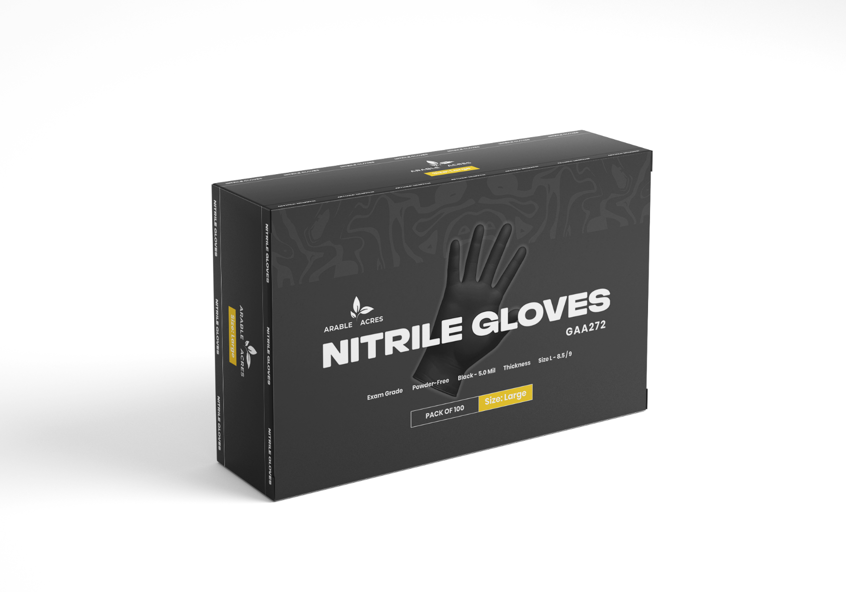 Arable Acres Nitrile Gloves are the ideal choice for professionals in the agricultural industry. Their exam-grade quality, powder-free design, black color, and 5 mil thickness offer unparalleled protection and durability.