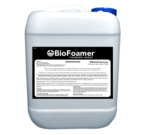 The BioSafe foaming agent is a premium high-foaming detergent for use with BioSafe Systems’ activated peroxygen products including ZeroTol 2.0, OxiDate 2.0, StorOx 2.0, SaniDate 5.0, SaniDate 12.0, SaniDate 15.0, and SaniDateFD.