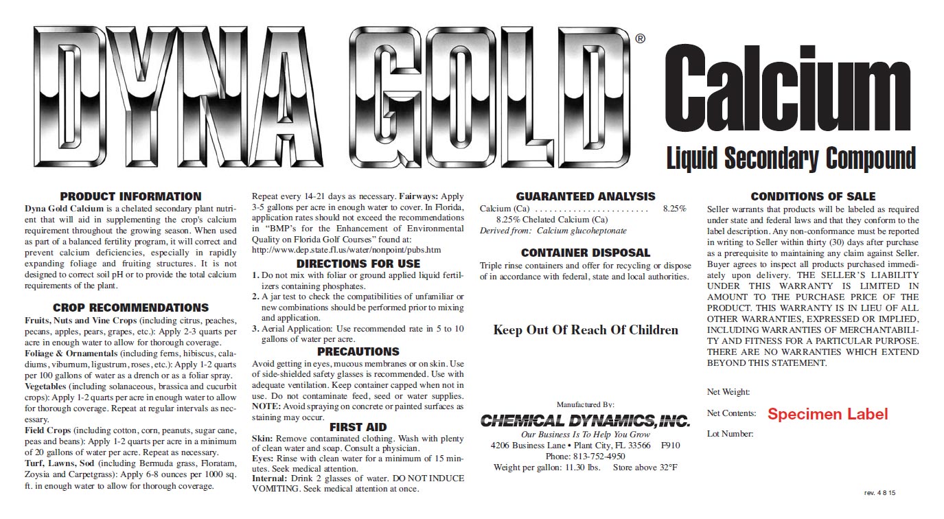 NDG005 Dyna-Gold Chelated Calcium - 8.25% Ca - 2.5 Gallon (2/Cs) (72/Plt) |