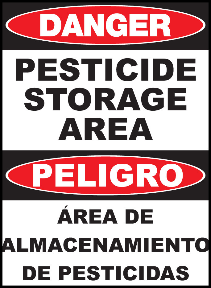 MillGood Facility Sign - DANGER Pesticide Storage - English/Spanish - Aluminum - 14-Inch x 10-Inch