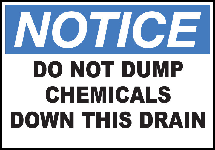 MillGood Facility Sign - NOTICE Do Not Dump Down Drain - Aluminum - 10-Inch x 14-Inch