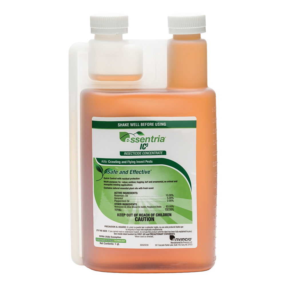 Featuring active ingredients derived from essential oils, Essentria® IC-3 is an environmentally friendly pest control solution. The natural liquid insecticide provides immediate knockdown and long residual control of a variety of insects, including multiple types of cockroaches and species of ticks. Essentria® IC-3 Insecticide by Zoëcon offers sensitive pest control, with a target-specific mode of action.