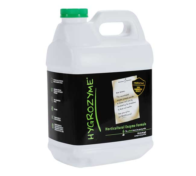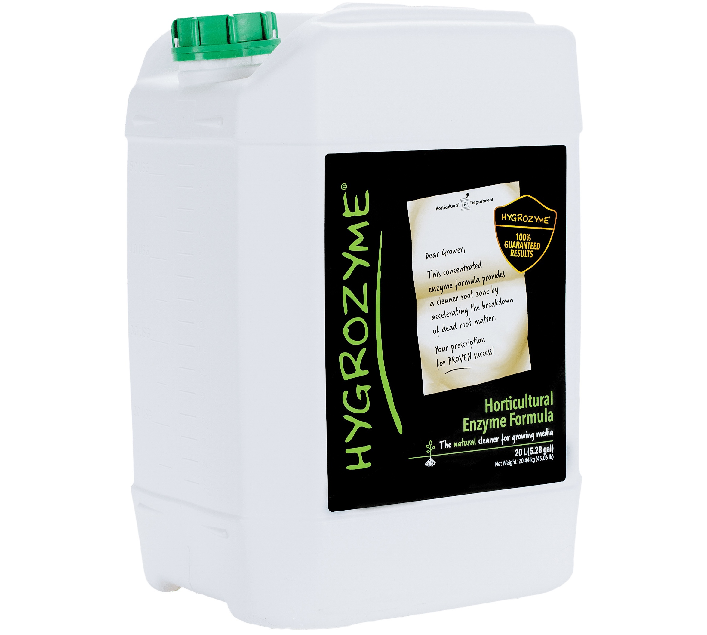 Hygrozyme is the World's Premier Horticultural Enzymatic Formula. Comprised of enzyme-based cleaning products used to help clean systems and growing media, this product is bacteria free and easy to use without introducing foreign and unknown bacteria into your growing environment.