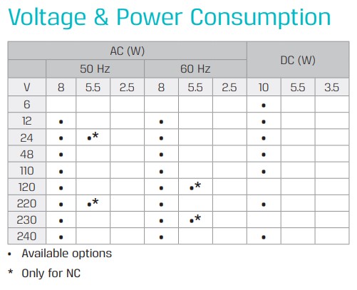 All Baccara coil voltages are ± 10% of nominal